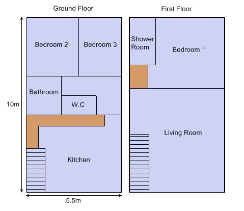 - Bedroom 3 bunk beds (90cms), wardrobe and chest of drawers.
